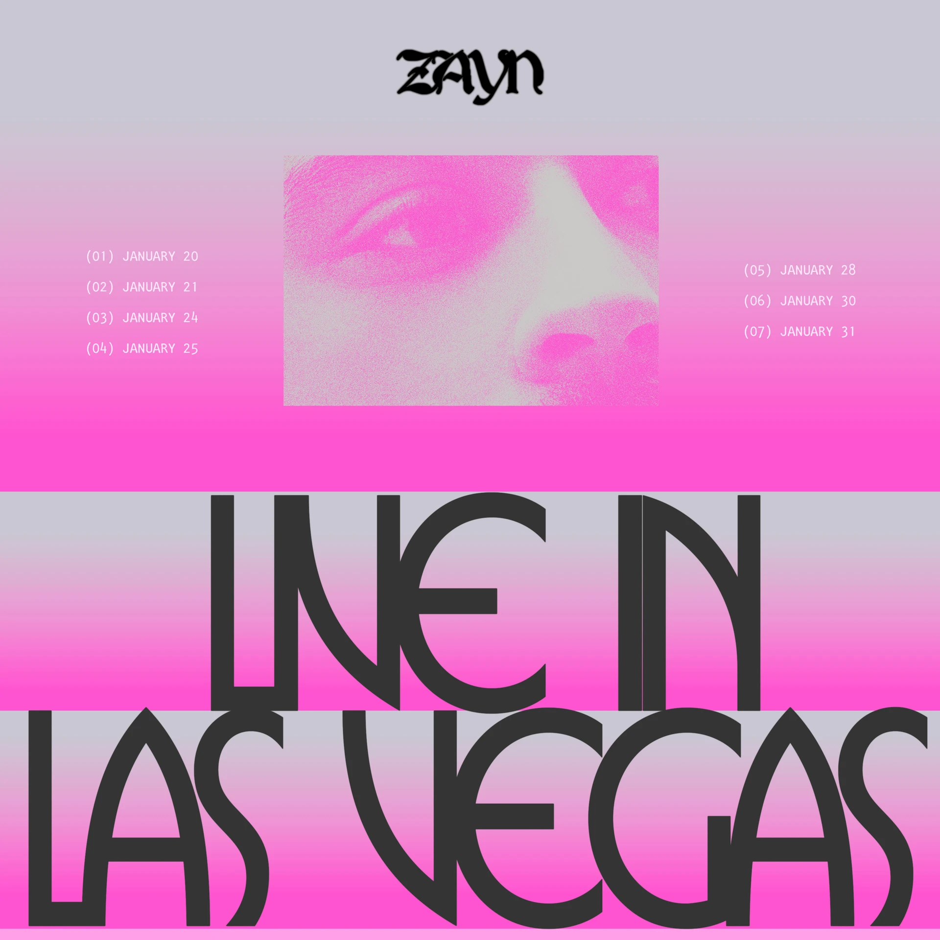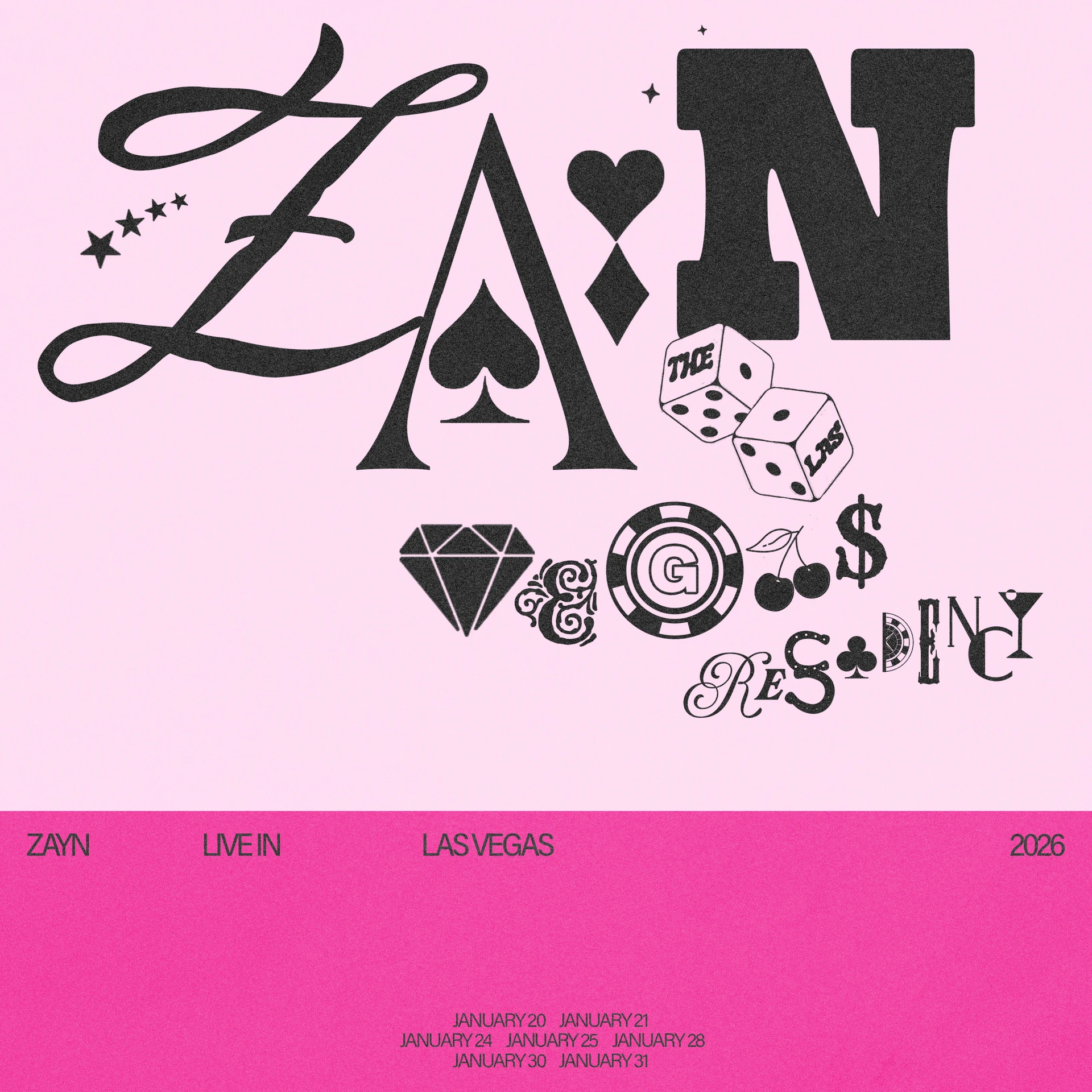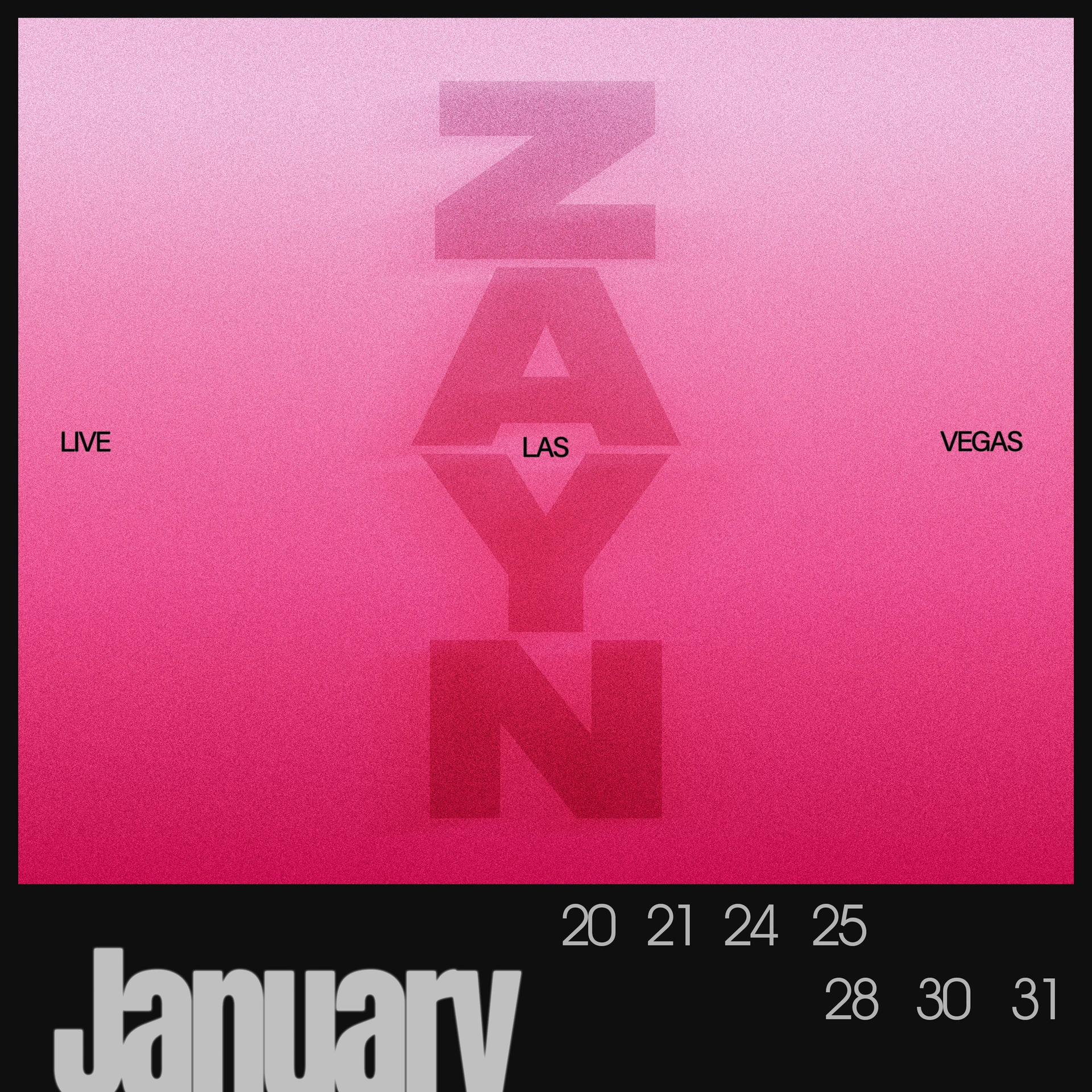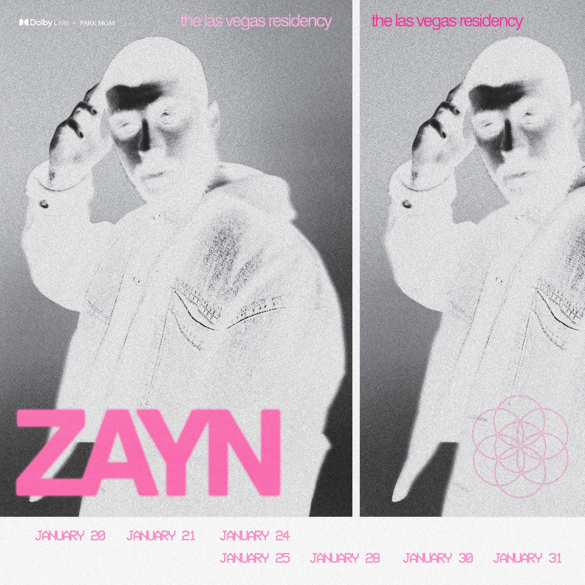Creative direction and design execution for ZAYN’s Las Vegas residency at Dolby Live, global marketing, physical fan experience and merchandising rollout.